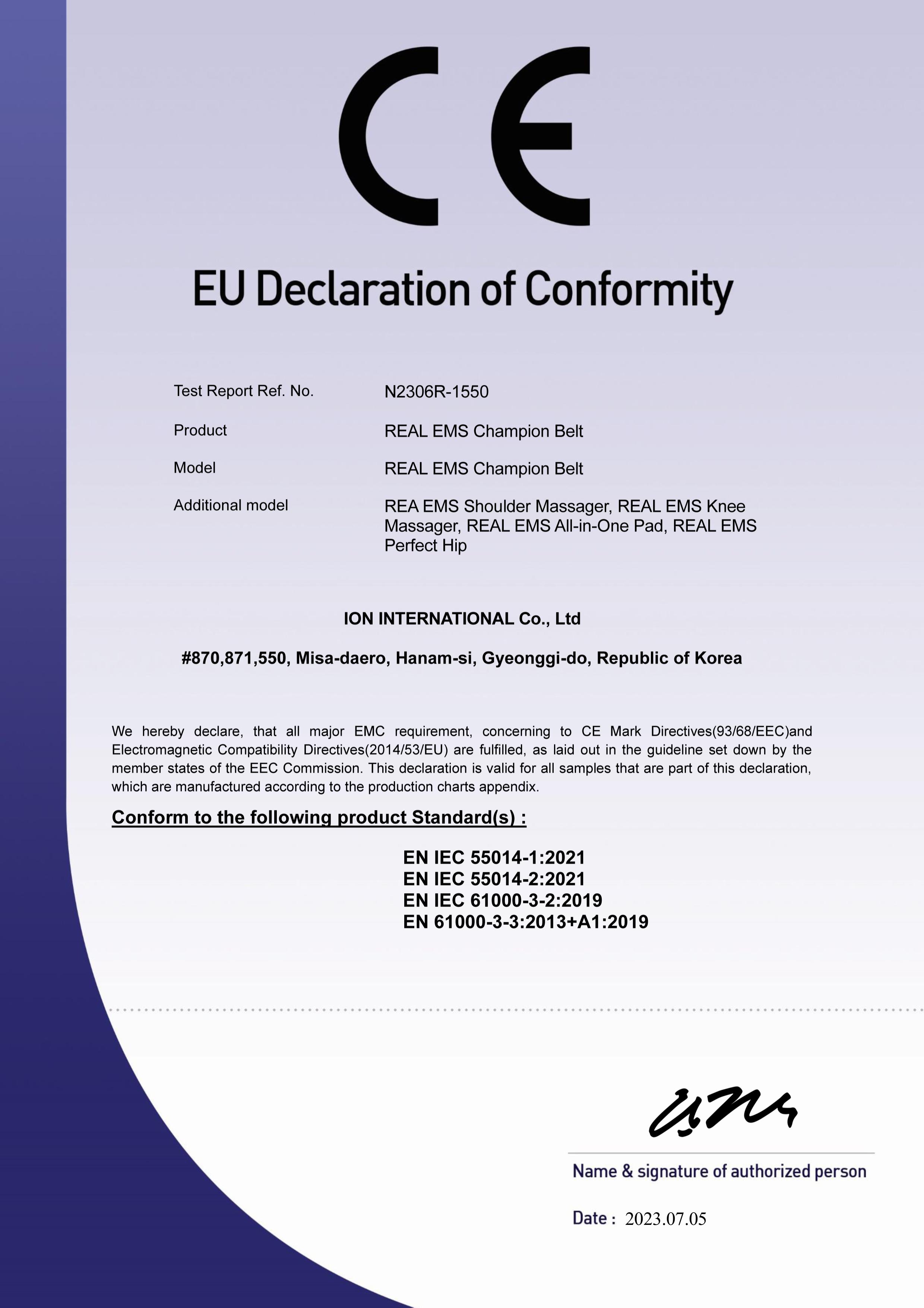 • Real EMS là sản phẩm công nghệ cao nhập khẩu từ Hàn Quốc, đạt chuẩn quốc tế với nhiều giấy chứng nhận chất lượng.