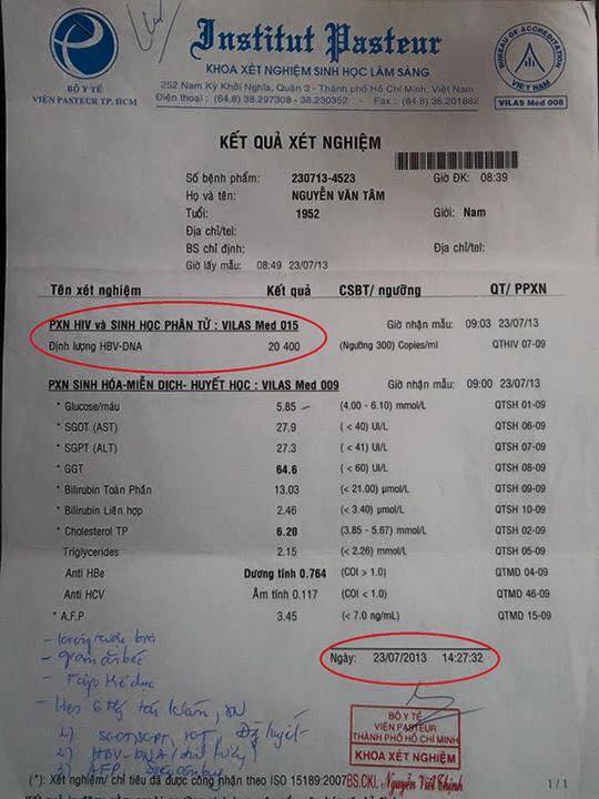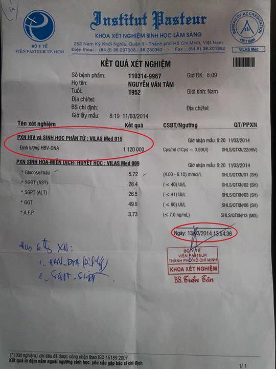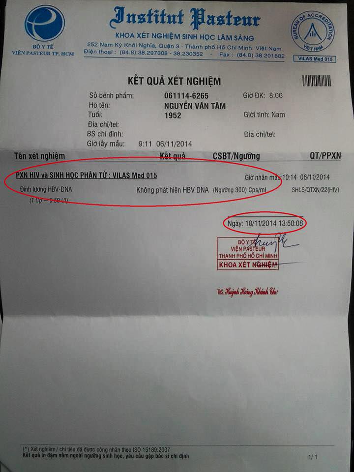 Anh Tâm ở Sài Gòn phát hiện bị viêm gan B từ năm 2012 với số lượng virut viêm gan B là 15.200 con. Mặc dù anh có điều trị theo phương pháp Tây y tại các bệnh viện lớn nhưng số lượng virut viêm gan B vẫn tăng chóng mặt. Tới tháng 3/2014 đã lên tới 1.120.000 virut. Sau đó, nhờ người quen giới thiệu, anh đã sử dụng sản phẩm nấm ngưu chương chi kết hợp với vitamin C tự nhiên. Sau 1 tháng sử dụng, anh Tâm đi xét nghiệm lại. Và thật bất ngờ, ngay cả đối với vị bác sỹ điều trị cho anh, kết quả là không phát hiện thấy virut viêm gan B ( ngưỡng 300 ). Như vậy chỉ cần chi phí rất thấp so với 4 năm trời điều trị theo Tây y, nhờ có nấm ngưu chương chi anh Tâm đã đẩy lui được bệnh viêm gan B mà hiện nay rất nhiều người mắc phải.