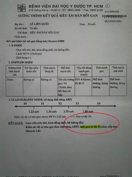 Tác dụng kỳ diệu của nấm ngưu chương chi đối với bệnh nhân Lê Liên Quốc bị xơ gan độ F4. Chỉ sau 3 tháng sử dụng nấm ngưu chương chi đã trở về F0. Chỉ số ung thư gan từ 17,1 giảm xuống còn 9,7 mg/ml ( chỉ số bình thường là < 8 mg/ml ).